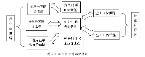 “價值鏈”這一觀點最早誕生于 1982 年,由美國哈佛大學教授邁克爾·波特提出。邁克爾·波特認為,“每一個企業都是在設計、生產、經營、銷售和服務其產品的過程中進行種種舉動的集合體。所有這些活動可以用一個價值鏈來表明。”他強調企業并不是封閉的“孤立島”, 應當從更宏觀的層面上進行研究,他認為企業的主要功能在于設計產品、生產產品、銷售產品,進而在這個整體的過程中獲得企業的價值。但是,他的“價值鏈”概念還并不完善,存在許多缺陷,比如,他認為“利潤是價值鏈研究的主要目標”,這一觀點過于片面,存在漏洞。美國著名教授海恩斯對于“價值鏈”這一概念有全新的創新性認識,在邁克爾·波特的基礎上,進一步發展了其“價值鏈”理論。海恩斯教授主要在兩方面進行了理論創新。一方面,海恩斯打破了傳統對于企業和價值鏈的認識,他認為“價值鏈”理論應用于企業最終的目標是讓“顧客滿意”,而不僅僅是“利潤最大化”; 另一方面,他認為,價值鏈是一個更為系統的理論,不僅僅在企業內部的各環節需要使用,更多是要形成以企業為核心的,與企業發生經濟業務往來的企業也應當包含在價值鏈中,包括原材料和客戶的整體系統,因而比波特教授的理論更為先進,更有前瞻性、實用性更強,并且有更系統的思想。隨著信息技術的不斷發展,科學技術進步,對于實體的研究逐步轉變為虛擬、抽象的研究,因此“虛擬價值鏈”應運而生。所謂“虛擬價值鏈”是和“實際生產價值鏈”相對相應的。“虛擬價值鏈”更多的是關注信息的價值。圍繞目標企業,其關聯企業的相關信息也是一種價值。對于普通的施工企業來說,施工企業購買原材料的水泥、沙土、木材等上游企業的報價不同,直接影響到整個行業的競爭。“實際生產價值鏈”指的是實際發生了的一系列關系,比如施工企業在實際的生產運營中產生的一系列交易。“虛擬價值鏈”在目前信息時代逐漸顯得更為重要,可以說,在二十一世紀,誰掌握了一手信息,誰就掌握了主動權。國內將成本與價值鏈相結合的相關理論相對于國外來說起步晚、發展慢。2001 年,中國人民大學閻達五教授率先提出“價值鏈會計”這一重要的思想觀點。閻達五教授認為。會計不應當僅僅是一種記賬方式和記賬手段,而應該賦予會計這門課程更多的含義和意義。會計應當是一種管理方式,應當構建“以價值鏈為載體、以實時控制為核心的、融合傳統財務會計和管理會計與一體的價值鏈會計”,這一觀點不僅僅是價值鏈引入中國的開端,更在很大程度上是會計自身的進步和發展,可以說,閻達五教授在會計領域上為我國會計事業的進步作出了巨大的貢獻。閻達五教授的“價值鏈會計”這一觀點一經提出,便收到了眾多學者的支持,并且為會計界理論的研究打開了一個新的起點和開端,從此國內對“價值鏈”這一概念有了全新的認識和理解。