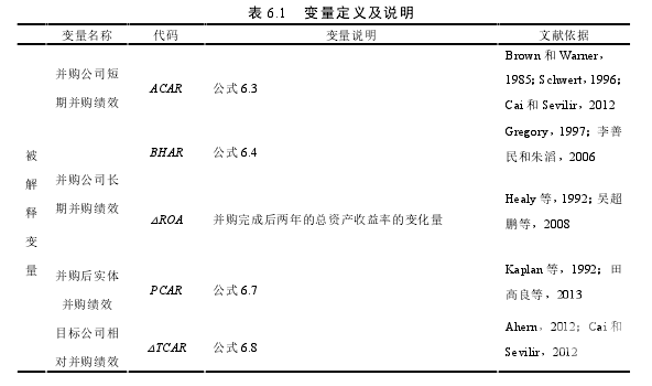 本文的第四章考察了董事聯結對并購目標選擇的影響,發現并購公司與潛在目標公司的董事聯結關系有利于降低并購交易成本,保障并購交易順利開展,與并購公司存在董事聯結關系的潛在目標公司更有可能成為目標公司。第五章考察了董事聯結對并購溢價的影響,發現董事聯結有助于降低并購溢價,幫助并購公司以較為合理的價格完成并購交易。并購目標選擇和并購定價是并購交易的兩個重要環節。進行恰當地并購目標選擇是并購創造價值的前提,而提高并購定價的合理性,降低并購溢價支付,是并購創造價值的關鍵條件。如果并購公司與存在董事聯結關系的公司進行并購,并購績效是否會因此而得到提高?接下來,本章將關注這一問題。