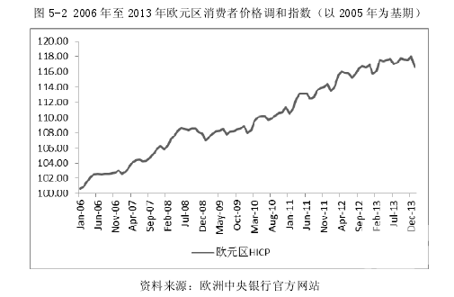 在金融危機爆發后,美聯儲通過第一輪和第二輪量化寬松貨幣政策購買大量的美國國債來向美國經濟市場乃至世界經濟市場投放美元,兩輪量化寬松政策共投放了逾 13000 億美元。巨額的貨幣增量在推動美國經濟復蘇的同時也推升了全球范圍的通貨膨脹預期,在美國、歐元區、日本和中國這四大經濟體中,中國面臨的通脹風險最大:在圖 5-1 中,中國的 CPI 增長速度明顯高于其他經濟體,而2010 年 4 月后美國的 CPI 增速則較為穩定。 通常來講,美國實行量化寬松貨幣政策、增加基礎貨幣都會導致美國本土商品價格上漲、通貨膨脹加劇,然而當前的實際情況卻并非如此。這是因為受本次金融危機影響,美國貨幣的乘數效應并不明顯導致短期內美國通脹預期不大——2008 年 9 月至 2009 年 6 月期間美國 M1 貨幣乘數和 M2 貨幣乘數分別從 1.617 和1.656 降至 0.904 和 0.942,此后雖有小幅震蕩但與危機前的數據相比,差距依然巨大。此外,美國政府通過轉移支付等方式將增發的美元返還給美國民眾,并通過醫療體系改革等手段提高了美國居民的生活福利水平,而美國從其他國家大量進口的商品平抑了國內可能上漲的物價,導致 QE1 和 QE2 實行以后美國的 CPI 并沒有出現大幅增長。 然而從長期來看,當危機漸漸過去、經濟形勢有所好轉之時,貨幣乘數必然會隨之上升,之前那些由于銀行出于風險規避考慮而滯留在金融系統內部的資金也會隨著經濟的復蘇釋放出來,貨幣供應量的增加和乘數效應的增大必然會導致美元激增、供過于求。如果美聯儲和美國政府無法預見這一情形的話,那么可以想見彼時的美國經濟