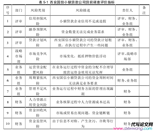 5.1 完善西安國信小額貸款公司風險管理的組織架構