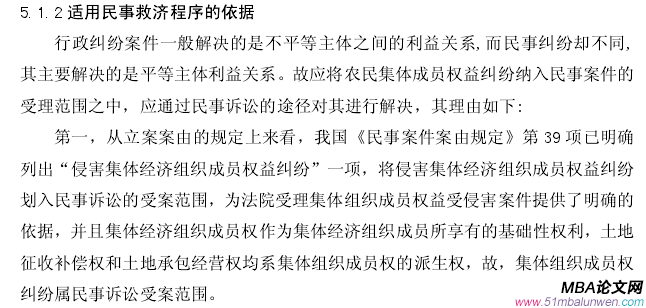 關于成員權糾紛的行政救濟,我國《村民組織法》第二十七條規定了基層政府及縣區農林行政主管部門按照相關法律規定有權對村集體相關決議進行指導或者糾正,實踐中分為兩種類型,一是行政機關在集體經濟組織召開決議之時,就積極參與協助指導決議程序,監督投票,宣講政策,這類情況下,效果還是很好的,較少出現侵犯部分成員權益的情況,在這種監督下,因為決議程序較完備,不僅令多數村民信服,而且一旦發生訴訟糾紛,村委會也能夠提供較完整的證據材料,有利于糾紛的判定;另一種類型是行政機關事后介入,即部分集體成員發現權益被侵害后,以信訪等方式向行政機關反映,要求予以救濟,但在實踐中此種事后救濟手段效果并不理想,一是啟動行政救濟時,集體決議已經開始執行,有些時候征地補償款甚至已經按照錯誤決議發放完畢,即使政府認為決議錯誤,事后予以糾正的難度也很大,二是法律法規明確賦予了政府機關就集體經濟組織在土地發包方面的糾正權,在征地補償款分配方面,缺乏相關法律支持,因此有些案件中,雖然政府也出具了指導意見,但是村集體沒有執行,最后集體成員還是求助于訴訟途徑,三是行政機關的信訪處理意見不具有終局性,某案件中,因為集體成員多次上訪,行政機關出具多份處理意見,由于時間跨度較長,信訪負責人員變動較大,導致各處理意見之間還相互矛盾,嚴重降低了行政救濟手段的救濟效果??傮w上,行政機關提前介入的效果要好于事后介入,但實際案例中,提前介入的案例還是很少的,造成多數情況下,成員權益受侵害時,往往難以通過行政救濟手段得到保護。