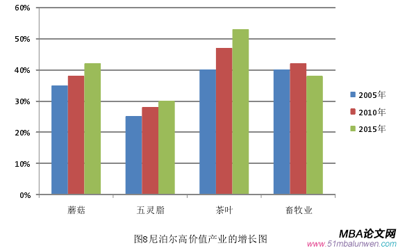 高價值產品(HVPs)指的是半加工或深度加工的農業商品,例如果脯蜜餞,以及未經過加工的而且單位價值高的產品,例如新鮮水果。發展中國家的一些傳統的出口商品也被認為是高價值產品,包括咖啡和可可豆。高價值產品被分成三種類型:半加工的,深度加工的和原始未加工的。其中兩類經過加工產品在出口和國內銷售之前,要符合產品轉型的程度要求。半加工的產品,如植物油,只經歷了中級加工處理流程,這種產品通常需要消費者根據自己不同的需求再度加工才能成為最終產品而食用。深度加工的產品,比如肉罐頭和魚罐頭,是經過更廣泛的加工,通常對于這類產品消費者是可以直接食用的。原始未加工的產品是指那些單位價值高的商品但是卻幾乎未經過任何加工。高價值產品能夠被分成三個群組:1) 半加工產品,如鮮肉和冷凍肉,面粉,植物油,烘焙咖啡,精制糖等。2) 深加工產品,消費者可直接食用。如牛奶,奶酪,葡萄酒,早餐麥片等。3) 未加工產品,通常也是可以直接食用的。如新鮮水果和水果干,新鮮蔬菜和蔬菜干,雞蛋,堅果等。農業在尼泊爾扮演者非常重要的角色,尼泊爾有許多產品都可以被歸類為高價值產品。在吉爾吉特-巴爾蒂斯坦地區,有 50%以上的農戶靠種植杏,櫻桃,無花果,李子,桃子,松子,核桃,沙棘,野生百里香,孜然,洋甘菊,甜葉菊,五靈脂等作物為生。除了上述的這些產品以外,還有一部分農民靠種植其他一些高價值產品來保障他們的基本生活,包括生姜,黃姜,尼泊爾麻椒,咖啡,傳統茶葉,豆蔻,蜂蜜,藥用植物和芳香植物包括冬蟲夏草等。舉例來講,在咖啡的產業價值鏈中,在 2014-2015 財政年度,有 3 萬多個農戶總共生產出 524 噸咖啡,其中65%被尼泊爾政府用于出口。同樣地,尼泊爾每年要生產 4500 噸高質量的傳統茶葉,以滿足高價值產品市場需求。在豆蔻的種植方面亦是如此。大豆蔻的生產給農民帶來非??捎^的收入。根據貿易和出口鼓勵中心統計的數字,在 2013-2014財政年度,尼泊爾總共出口了 4900 多噸大豆蔻,價值 42.7 億尼泊爾盧比。