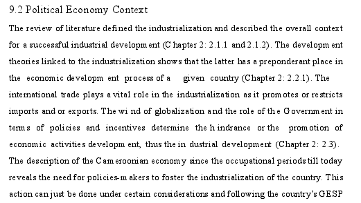 4.4 Conditions or Determinants for the Industrialization of Cameroon......93