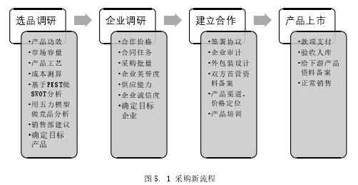 由于企業的沒有藥品生產企業,所有的業務從采購部門開始發展,并且采購部門的所有工作將會影響到其他部門業務的開展。新品采購數量、質量以及采購部供應保障直接影響到企業的銷售業績,采購成本的控制直接影響到財務的利潤核算,采購質量的高低直接影響質量部門的工作量以及客服部門接收到的客戶質量投訴情況。為確保公司整體銷售額的增長,公司對采購部提出更高的要求,對新品采購提出了新品采購數量以及新品采購銷售額的考核指標。參考近 5 年新品上市銷售數量,公司對采購部提出每年上市新品數量不低于 15 個,年度銷售額不低于 1500 萬元的考核要求。這個要求的提出,對新品采購的工作提出更高的要求。必須改變以往被動的新品采購流程來確保新品的采購質量,同時對新品采購還提出做好市場工作的要求。