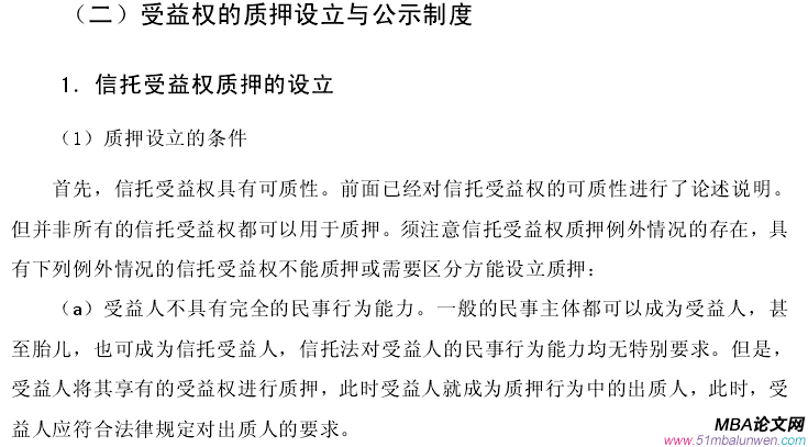 在 2013 年《國務院辦公廳關于加強影子銀行監管有關問題的通知》要求“建立完善信托產品登記信息系統,探索信托受益權流轉”。2016 年,中國信托登記有限責任公司(以下簡稱“中信登”)正式揭牌,推動了信托受益權流轉制度的完善。實務中,已經有信托公司嘗試用信托受益權質的方式為投資者拓寬融資渠道。信托受益權質押的金融實踐創新增強了信托產品的流動性,但我國法律并未對信托受益權質押進行規定,這就造成信托受益權質押的實踐缺乏法律的保障。因此,通過立法確立信托受益權質押制度可以彌補我國信托產品目前因缺少二級市場以及信托產品標準不統一帶來的流動性差的缺陷,滿足信托金融實踐創新的需要。筆者根據現行擔保法律中對權利質押的規定,對信托受益權質押進行理論建構。并在借鑒國內外相關立法經驗的基礎上,對我國信托受益權的設立及公示制度進行構建。并試圖通過完善信托受益權的發行、估值、信息披露以及風險保障機制,保證信托受益權質押制度的有效運行,為推動我國信托受益權的流轉,解決信托產品流動性難題,促進信托的繁榮發展貢獻力量。