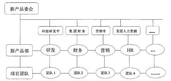 華羚集團為了保證實現突破發展瓶頸的經營目標,為藏地益寶蛋白質粉的開發上市建立了專門的新產品開發組織,該組織屬于矩陣式組織結構,主要包括新產品委員會、新產品部和項目團隊,各部門的成員是由集團各職能部門抽調的員工,上至高層管理者,下至基層生產工人,組成新的組織為藏地益寶開發上市服務。具體組織結構圖如下: