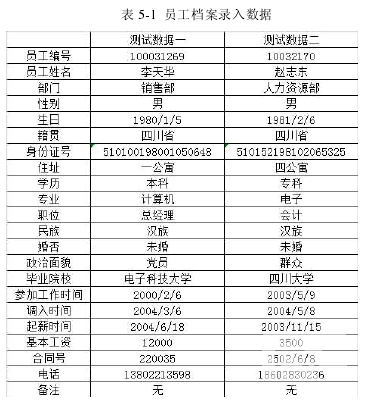 以下數據的錄入主要用來測試檔案錄入的各項功能,詳細見表 5-1: