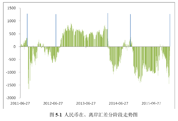 5.1  人民幣在、離岸匯差分階段走勢特征與原因分析
